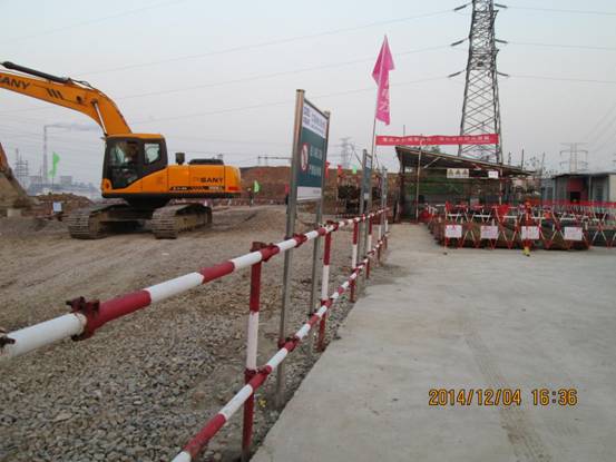 現(xiàn)場(chǎng)設(shè)置安全警示欄,鋼筋分類堆放